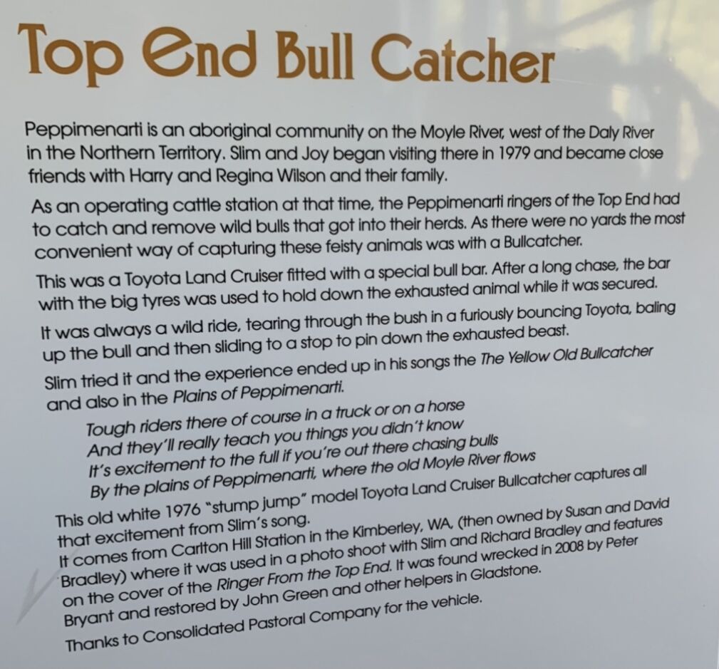 This was the bull catcher used on the back cover of Slim Dusty's iconic RINGERS FROM THE TOP END album in 1992… with him at the wheel is a young Richard Bradley (see below), son of David & Susan Bradley who owned Carlton Hill Station at the time in the East Kimberley.